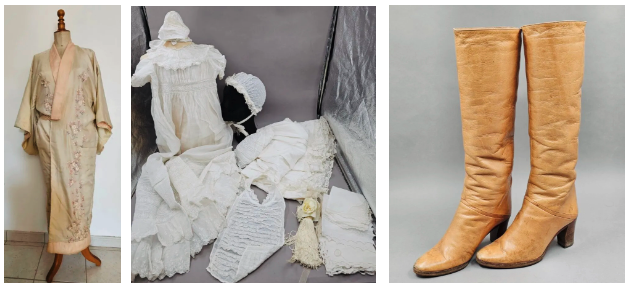 Vente de textile, maroquinerie, vêtements et militaria, foulards et divers : Draps anciens, dessus de lit, machine à coudre, mercerie, dentelle, tissu, vêtements anciens et vintage, cravates. Vêtements d’enfants, robes de baptême, nappes anciennes, serviettes et torchons anciens, napperons, rideaux, militaria. Sacs Longchamp, Rodier, Christian Dior, Louis Vuitton, Lancel, Christian Lacroix… Foulards Christian Lacroix, Hermès, Agnès B, Hugo Boss, C.Brochier… Cartable Lancel Manteaux Gerard Darel, Yves Saint Laurent, de Fursac, Madeleine…