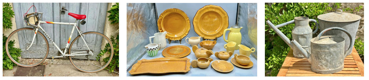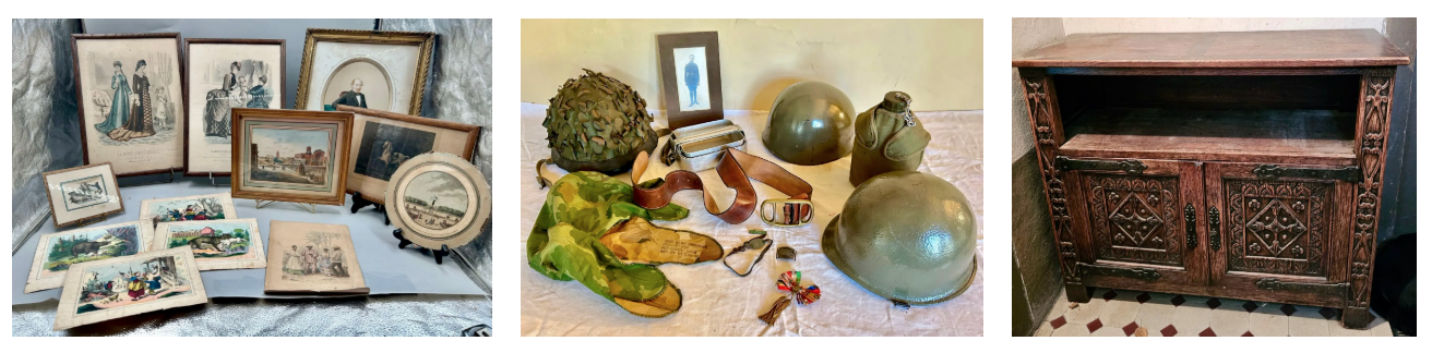 Bibelots, tableaux, vaisselle, mobilier, accessoires de jardin, fond de maison etc…